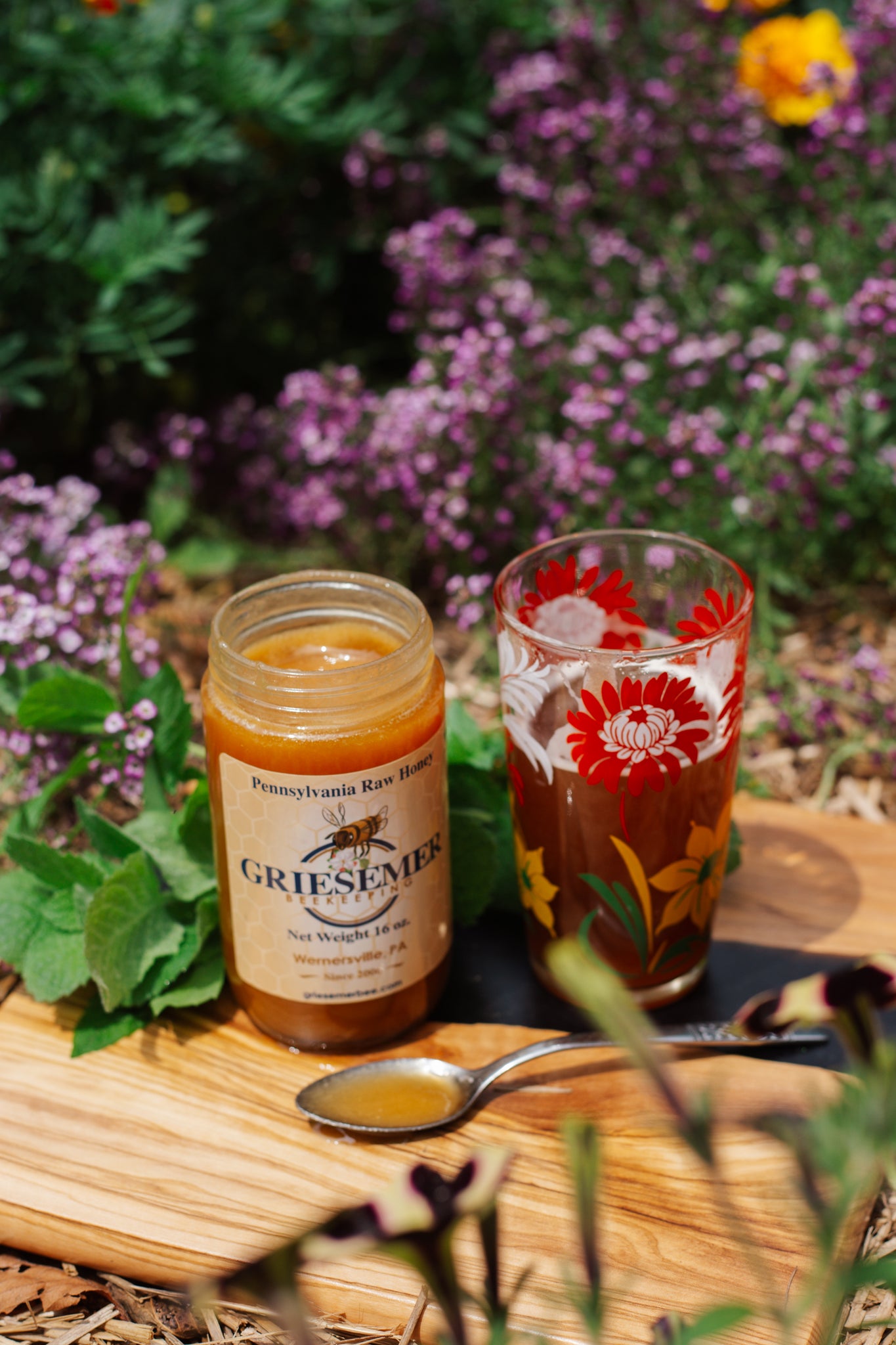 Nuestra miel cruda cremosa tiene una textura suave y fácil de untar. Esta variedad tiene un sabor similar al de nuestra miel de flores silvestres. No se calienta ni se filtra. Es producida por abejas criadas en el este de Pensilvania. El color y el sabor varían según el lote. Se presenta en un frasco de vidrio de 450 g.